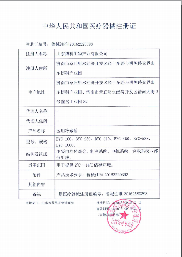 博科BYC-1000双开门医用冷藏箱