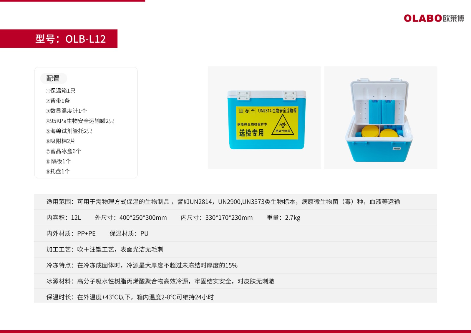 OLABO欧莱博生物安全运输箱OLB-L12