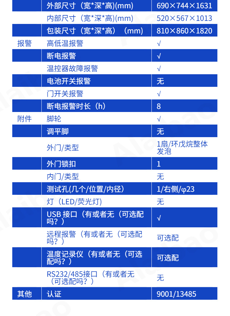 报警 | 高低温报警 | √ |