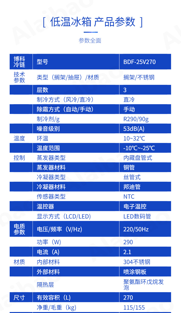 博科冷链 | 型号 | BDF-25V270 |
