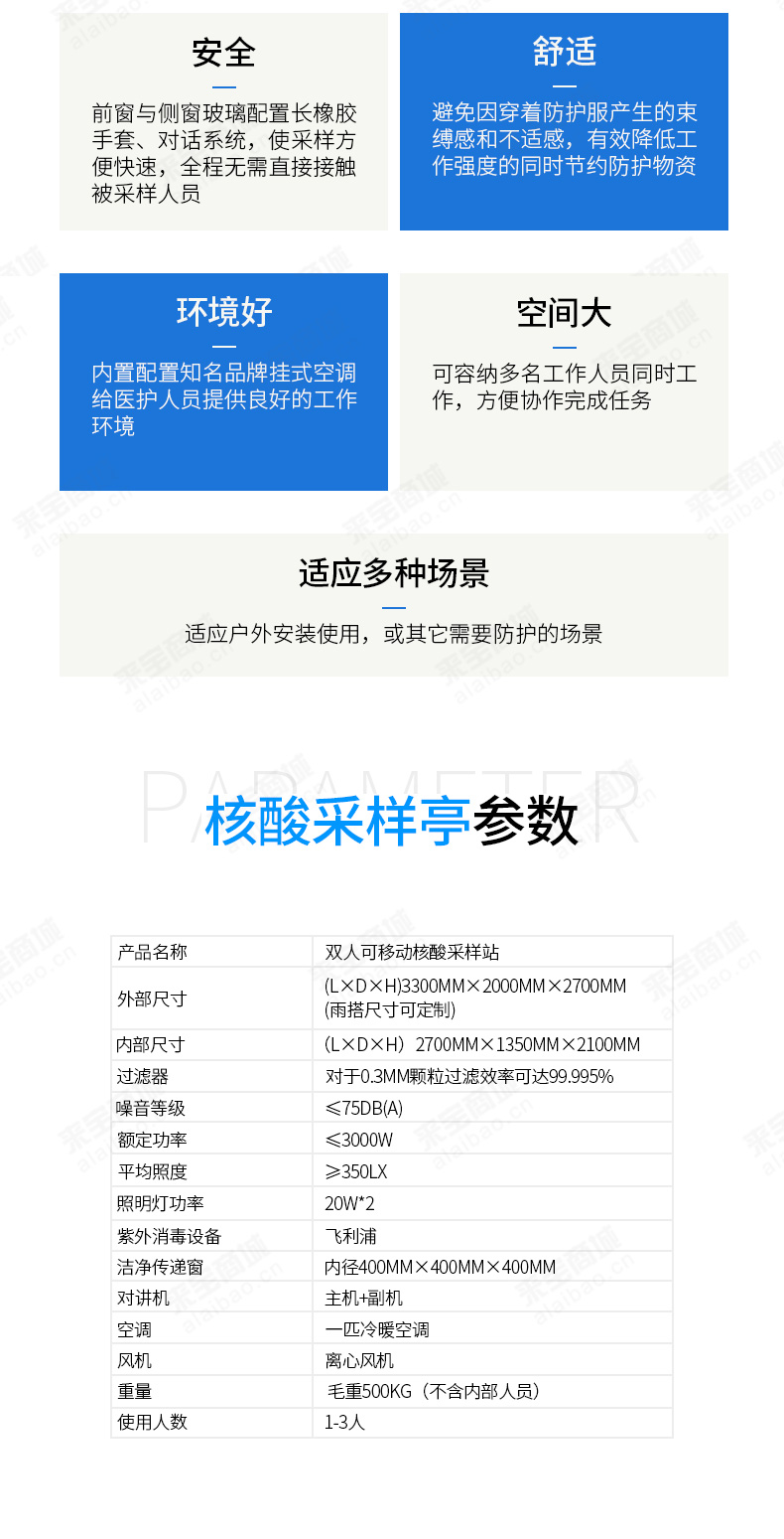 | 外部尺寸 | ≥(L×D×H)3300mm×2000mm×2700mm;(雨搭尺寸可定制) |